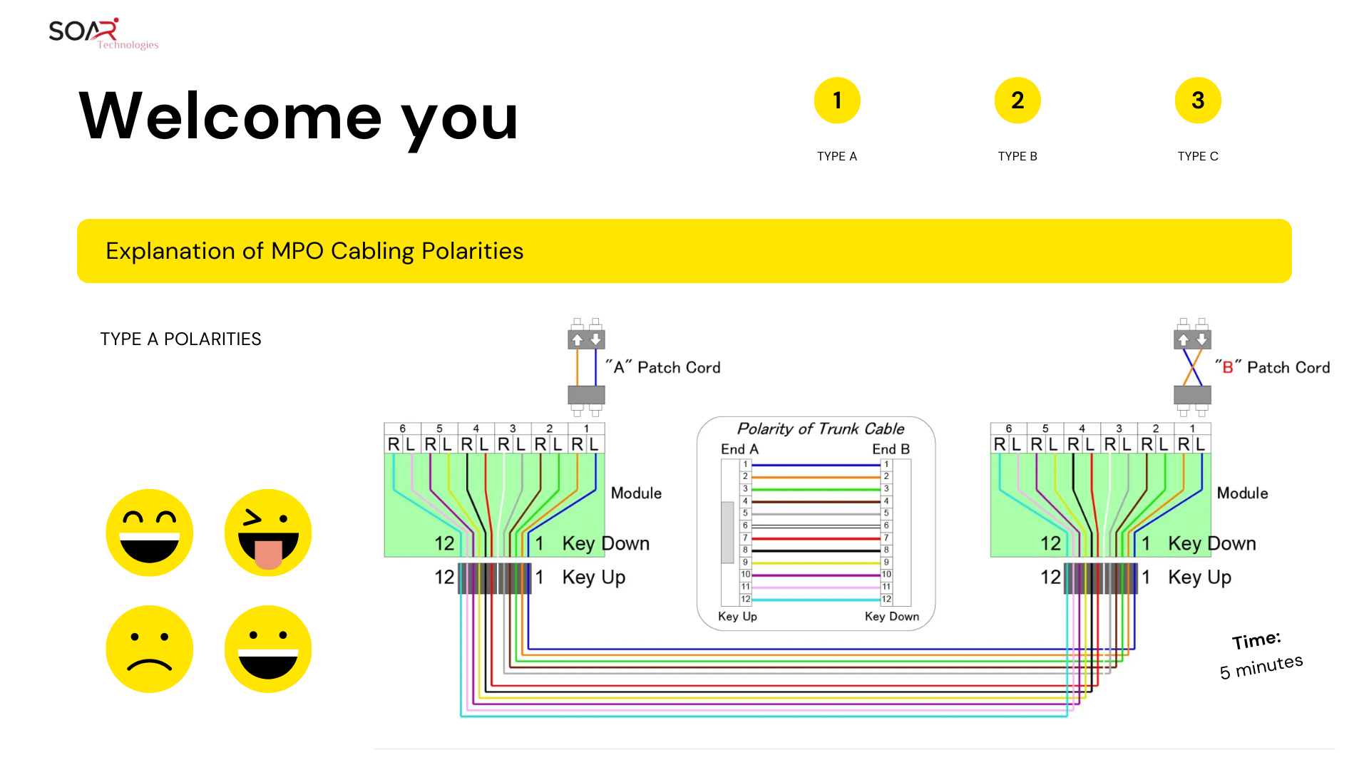 ( Type B goes through MPO array cable crosswise with “Key-Up” connectors at both ends of links )