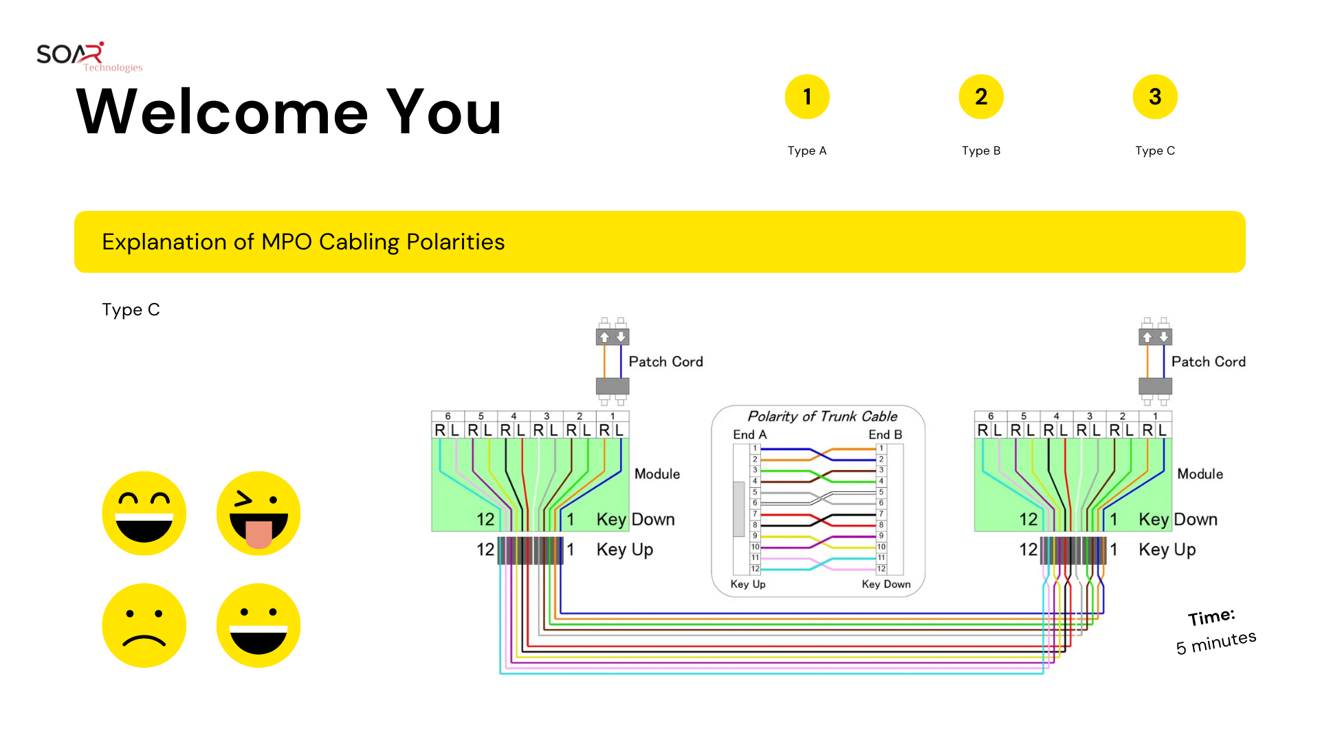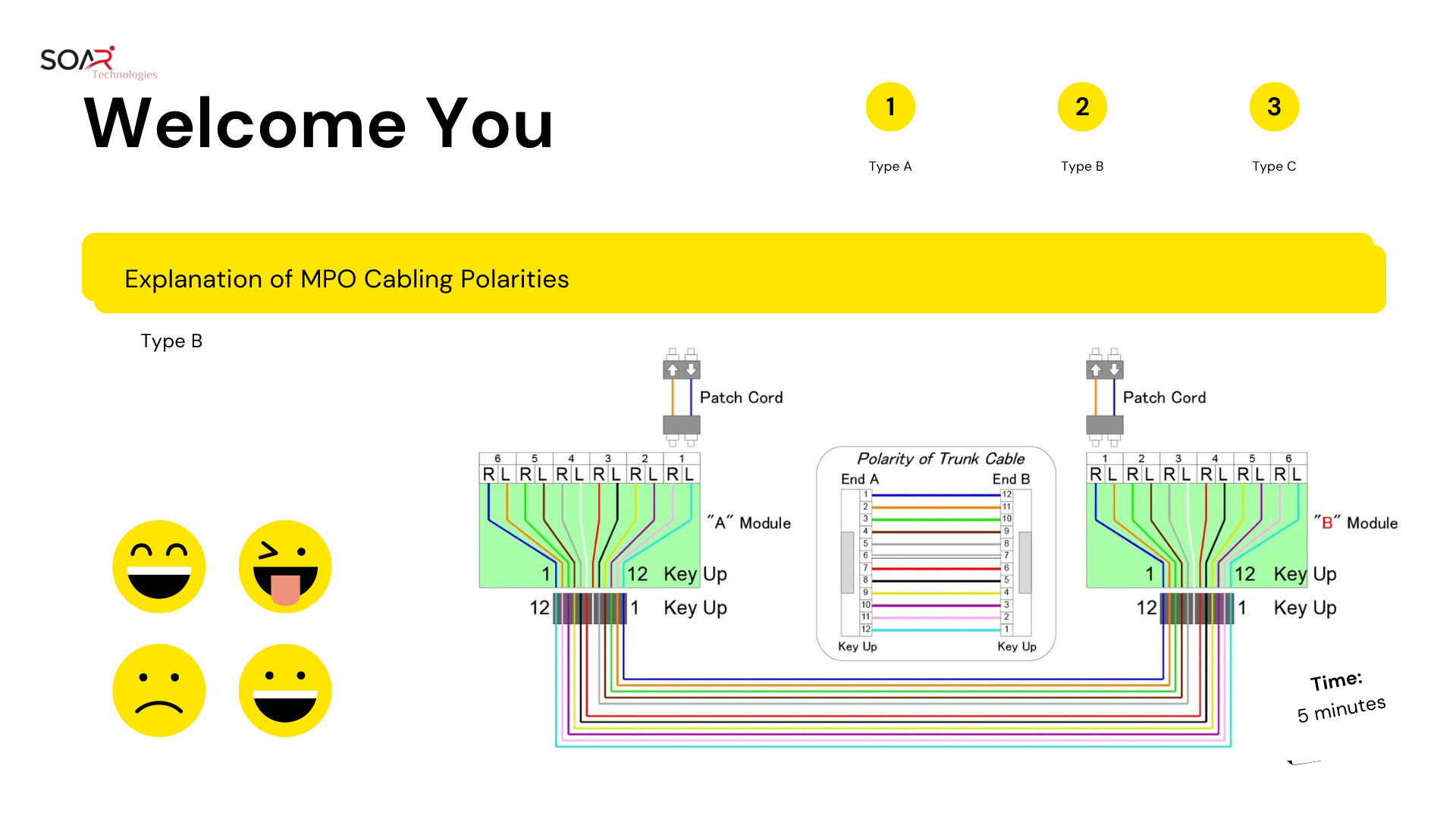 ( Type B goes through MPO array cable crosswise with “Key-Up” connectors at both ends of links )